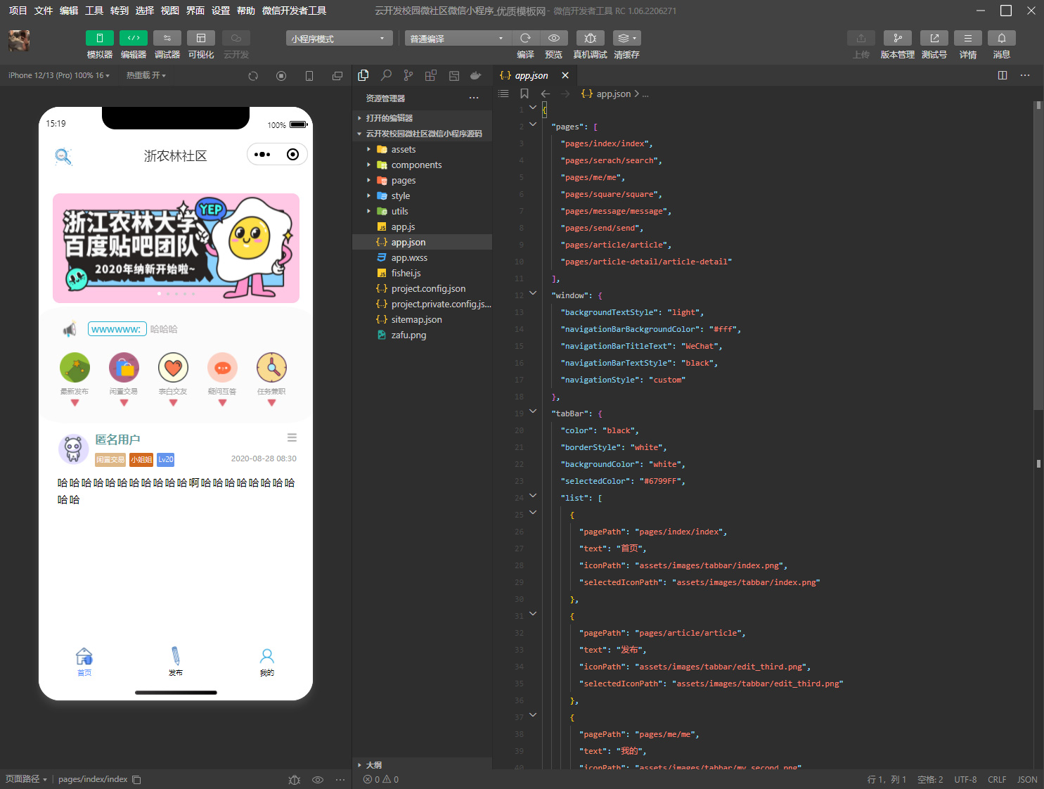 这是一款云开发校园微社区微信小程序的开源源码,包含了二手交易、交友、疑问互答、任务兼职、失物招领、趣事分享等实用板块和功能。在发布栏目中,用户可以上传图片或视频,选择是否匿名发布和发布位置,保护自己的隐私。该小程序还有首页轮播图广告、轮播公共聊天区最新聊天内容、展示帖子详细信息、个人信息区等功能。此外,该源码还支持更多功能的扩展,比如商城、修改个人信息、在线刷题等。虽然该小程序的功能尚未全部完善,但感兴趣的朋友可以自行完善并使用。板块分类包括了闲置交易、表白交友、疑问互答、失物招领等等,让你的校园生活更加便捷和有趣。