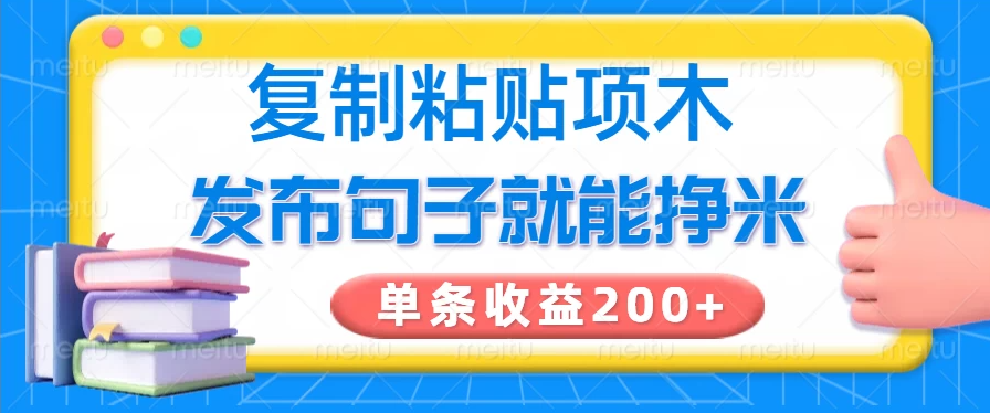 通过在小程序上发布一些经典句子,用户给你的句子点赞就能获得相应的收益,单条最高收益能达到200+;这个项目特别适合想利用碎片化时间赚外快的朋友,零门槛没有任何限制,只需要复制粘贴即可,大家只要持续发布句子就能获得点赞,收益也将是持续长久的。